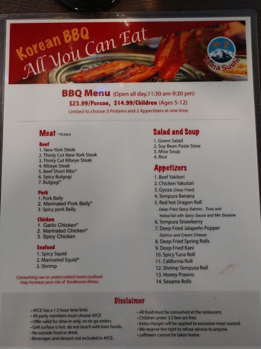 Yama Sushi Menu