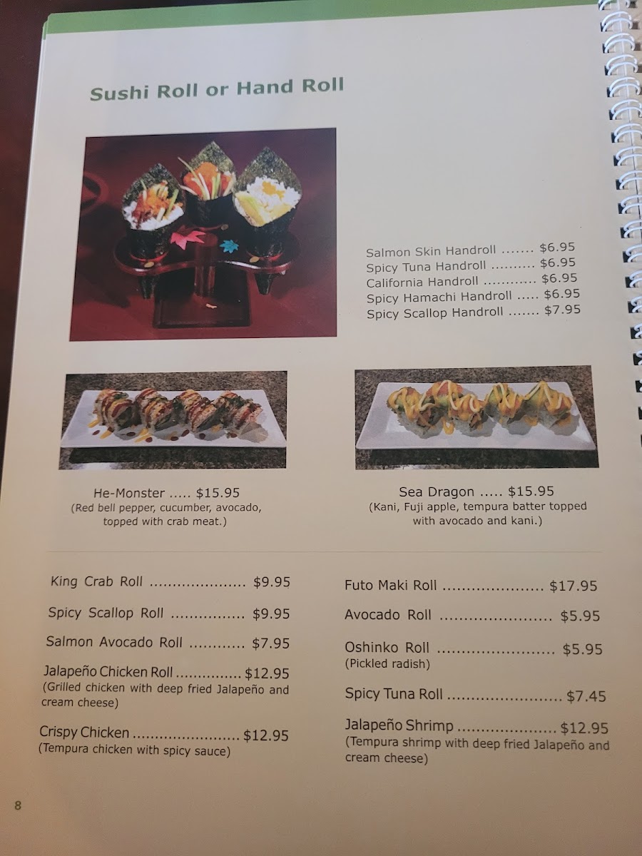 Complementary sides like miso soup and seaweed salad provide familiar comfort, while specialty items such as the Spider Roll or New York Strip Steak offer a heartier option for those seeking more variety. Lighter fare such as Salmon Poke and Tuna Poke also resonate well with those looking for fresh, well-prepared dishes.